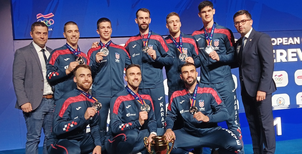 Hrvatska muška reprezentacija u borbama (Anđelo Kvesić, Ivan Kvesić, Ivan Martinac, Ivan Pehar, Dino Šimunec, Boran Berak, Toma Mileta, Mislav Plesivčak) osvojila je srebrno odličje posljednjeg dana jubilarnog 60. EP u karateu u Armeniji. U muškom ekipnom finalu Italija je bila bolja od naše vrste s 3-2.