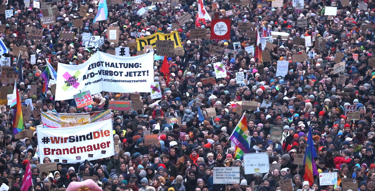 Policija procjenjuje kako je na prosvjedu bilo oko 160.000 ljudi. CDU prema anketama, uoči izbora koji su za tri tjedna, vodi ispred krajnje desnog AFD-a, a Merz je isključio mogućnost koalicije. Ipak, u parlamentu je zaobišao vladajuću koaliciju te zajedno sa desničarima prikupio potreban broj glasova - potez koji je osudila većina stranaka i političara, uključujući bivšu kancelarku Angelu Merkel.