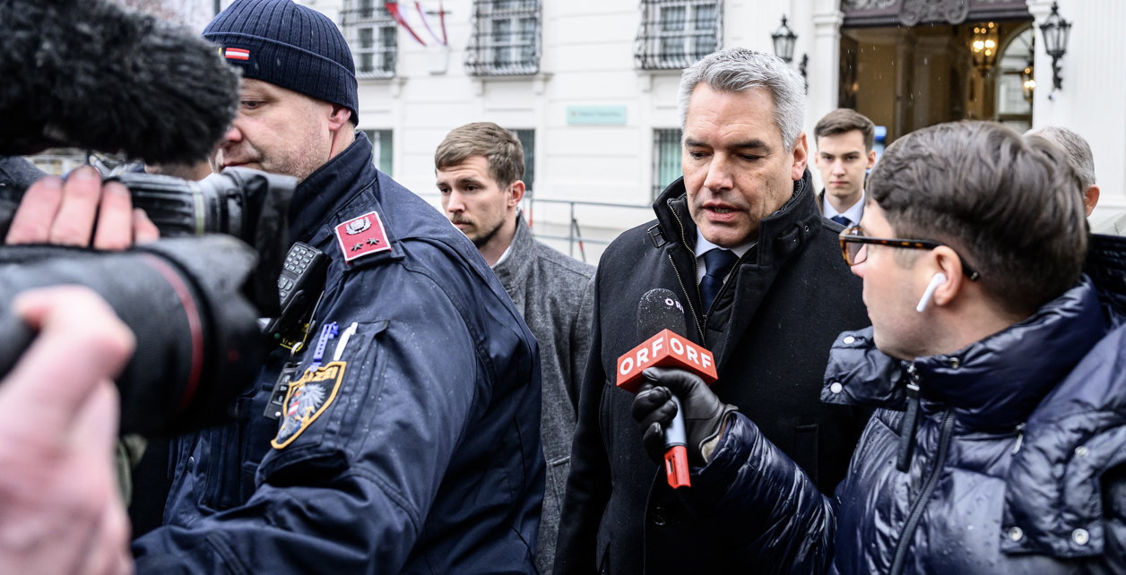 Nehammer je postao kancelar u prosincu 2021. Njegove političke ambicije naišle su na zid na parlamentarnim izborima u rujnu kada je njegova konzervativna Narodna stranka (ÖVP) završila na drugom mjestu, nakon krajnje desne Slobodarske stranke (FPÖ).