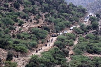 Videosnimke pokazuju kamione, od kojih su neki prevozili vreće brašna, a drugi muškarce s lopatama, kako putuju prema udaljenim selima.