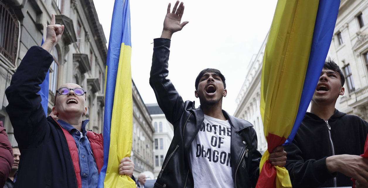 U subotu su proeuropski Rumunji napravili more od plavih zastava EU-a i trobojnih rumunjskih zastava, neki su uzvikivali antiruske parole i nosili transparente "Jedinstvo i poštovanje - Europa nam daje prava", ili "Oslobodite svoj um - Ne ruskoj mudrosti".