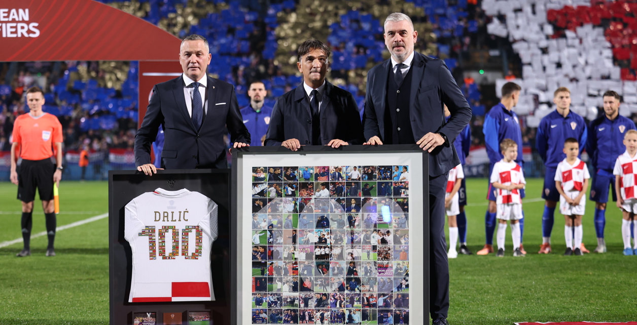 Izbornik je dobio i prigodne poklone od predsjednika Hrvatskog nogometnog saveza Marijana Kustića i tehničkog direktora Stipe Pletikose, dres s brojem 100. Posebnost dresa je što je brojka "100" napravljena od zastava reprezentacija protiv kojih je Hrvatska igrala otkad je on izbornik. Kustić i Pletikosa uručili su Daliću i sliku na kojoj se nalazi 100 fotografija s utakmica koje je vodio.